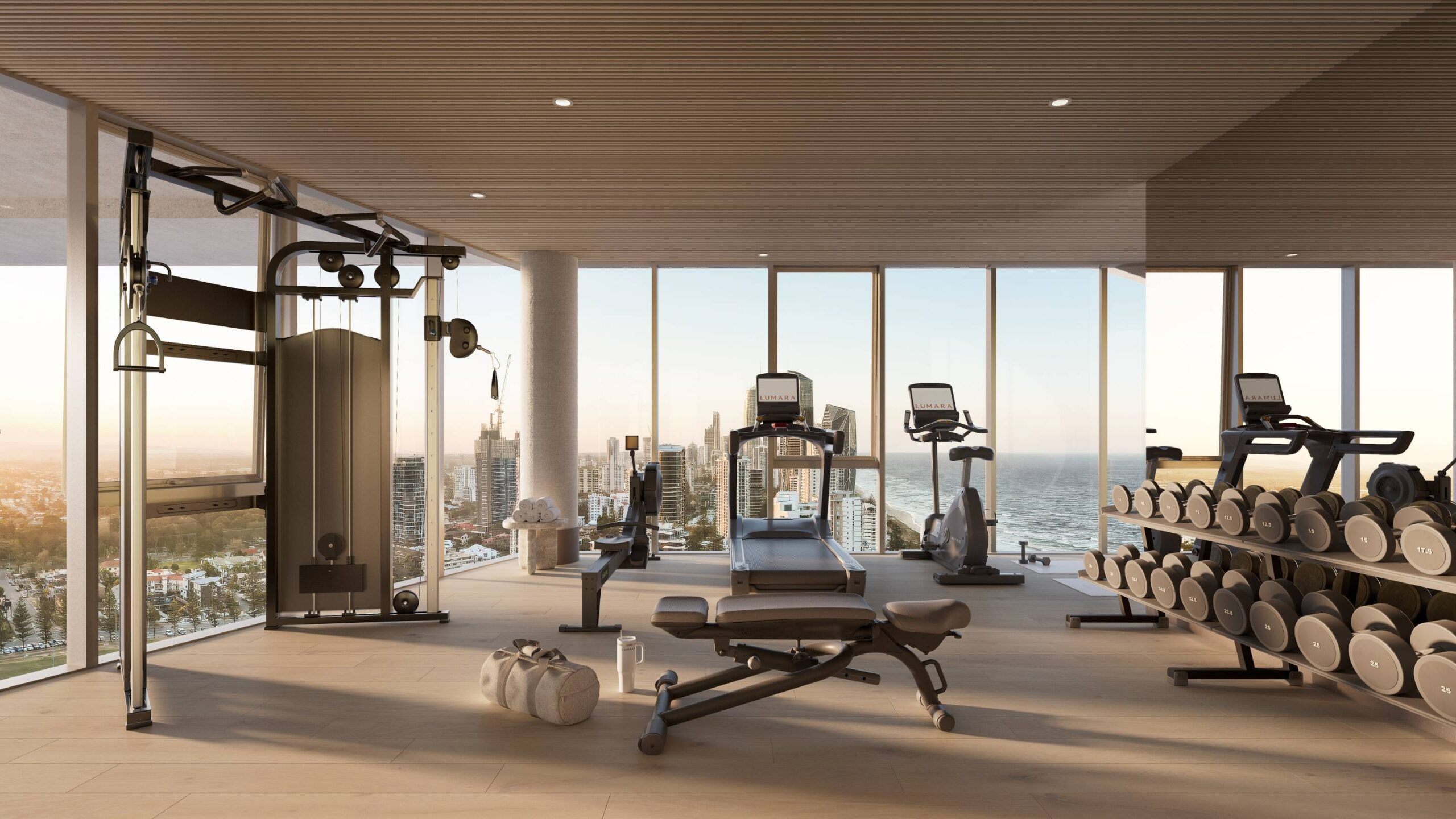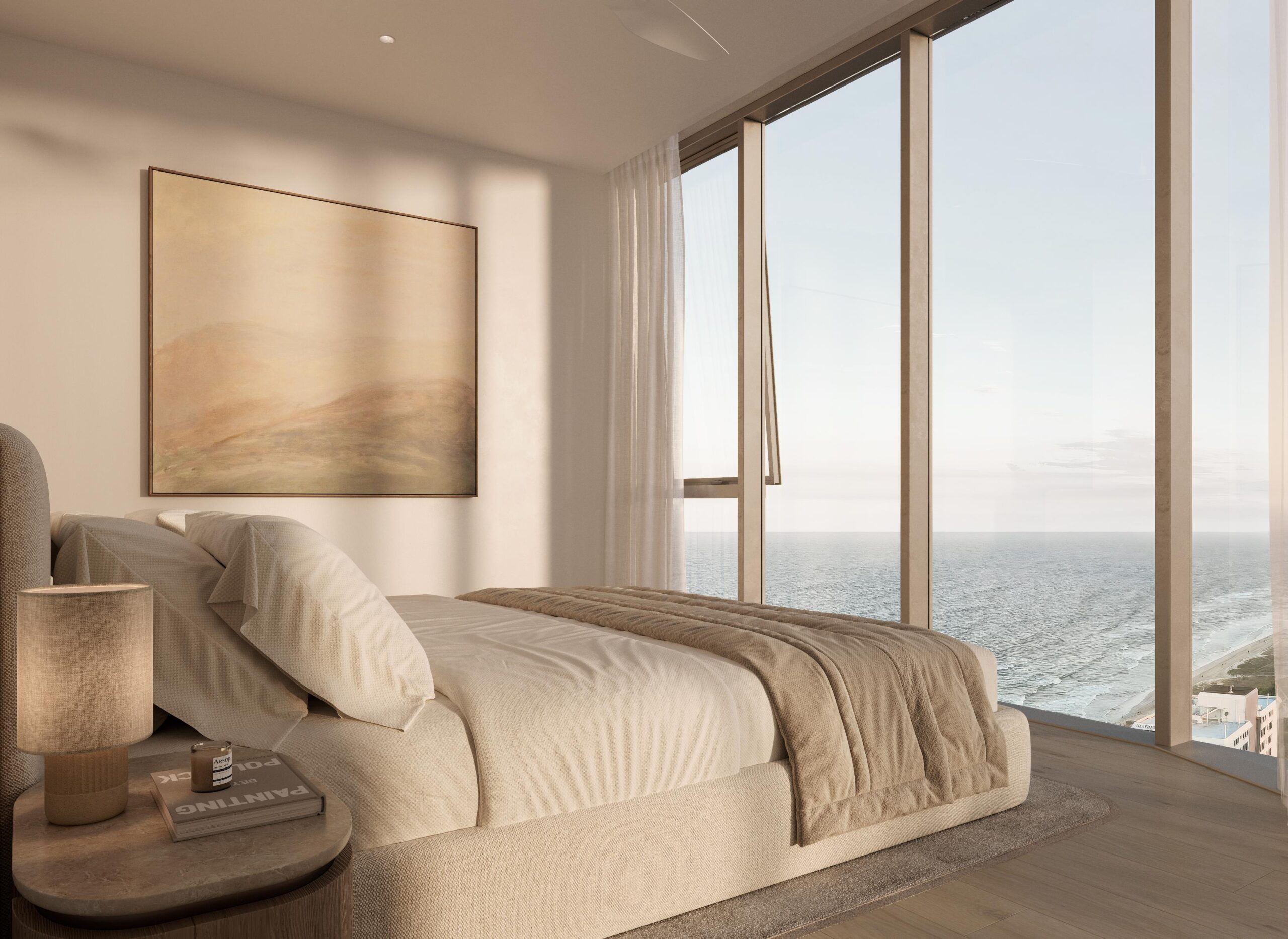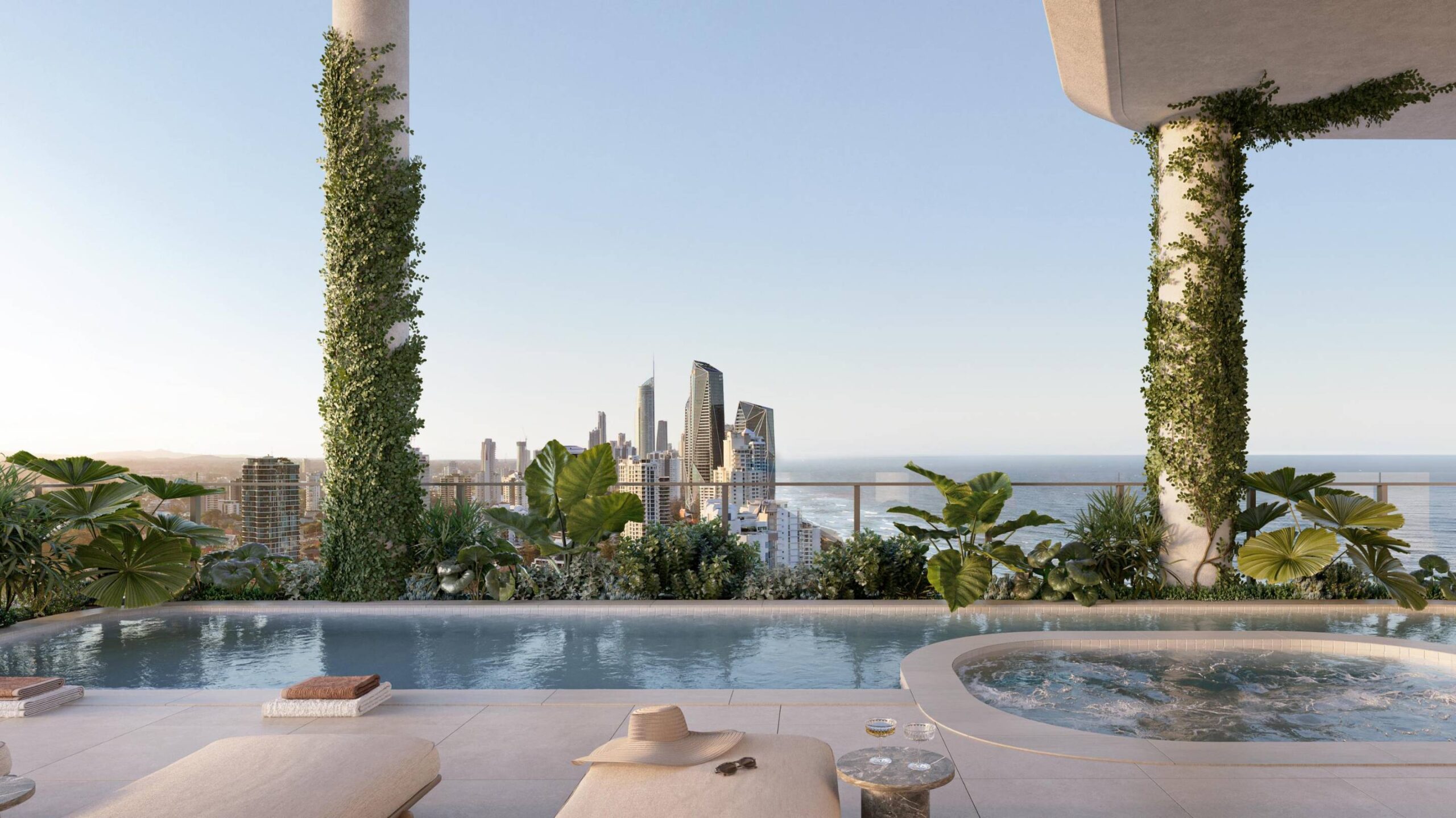 Stone, timber, and concrete work with salt air and weather—materials that gain patina rather than fight the coast. Sand tones, driftwood greys, worn-shell whites create palettes pulled from the beach itself. Every apartment enjoys a full northern aspect, capturing ocean, city skyline & hinterland views, while cross-ventilation through glazed openings invites cooling breezes throughout. These are homes designed for barefoot mornings, doors thrown open to subtropical air, and seamless indoor-outdoor flow that defines real coastal living.